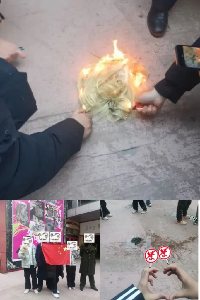 The incident took place in Henan province. According to reports and audiovisual material posted on social networks such as Weibo, an elderly woman approached the young cosplayer and, without saying a kind word, used a lighter to set fire to her ash-blonde wig. As the flames consumed the accessory, the attacker shouted phrases related to “not forgetting history” and reproached young people for “worshipping the culture of the invaders.”